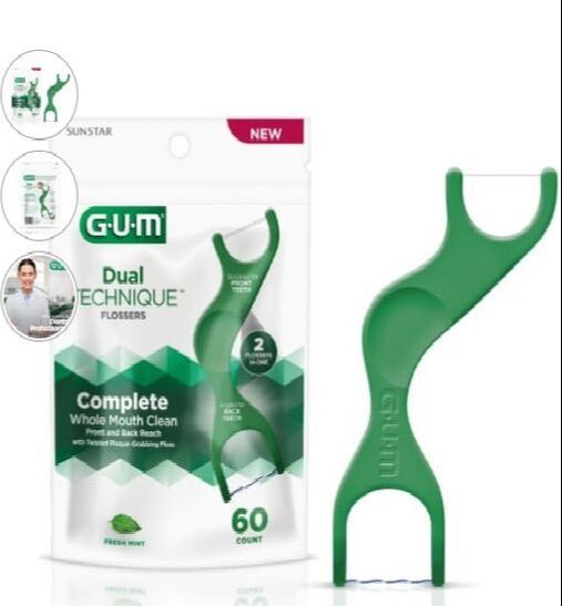 GUMĀ® Dual Technique Flossers is designed for front and back teeth cleaning with twisted, shred-resistant mint-flavored floss. Covers 30% more surface area and comfortably slides between teeth.